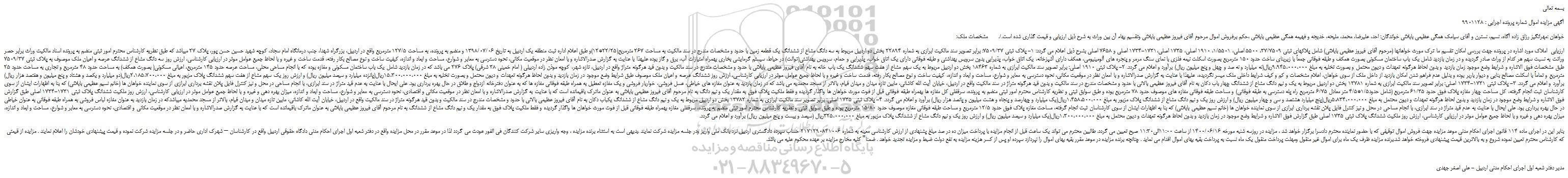 آگهی مزایده اموال شماره پرونده اجرایی : 9901128