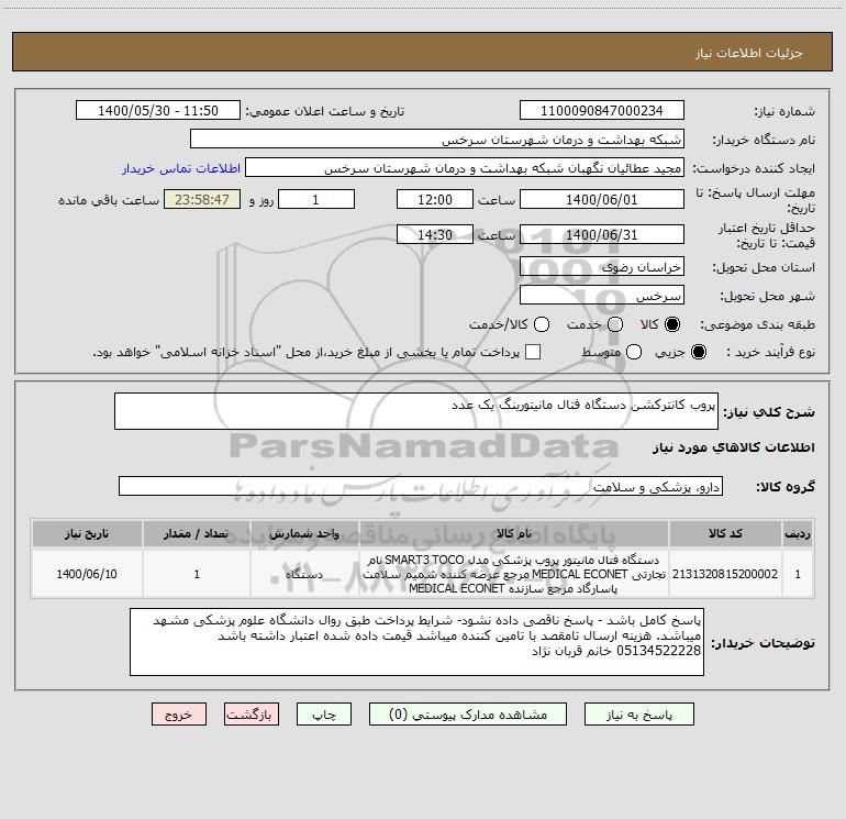 نام دستگاه خریدار:شبکه بهداشت و درمان شهرستان سرخس