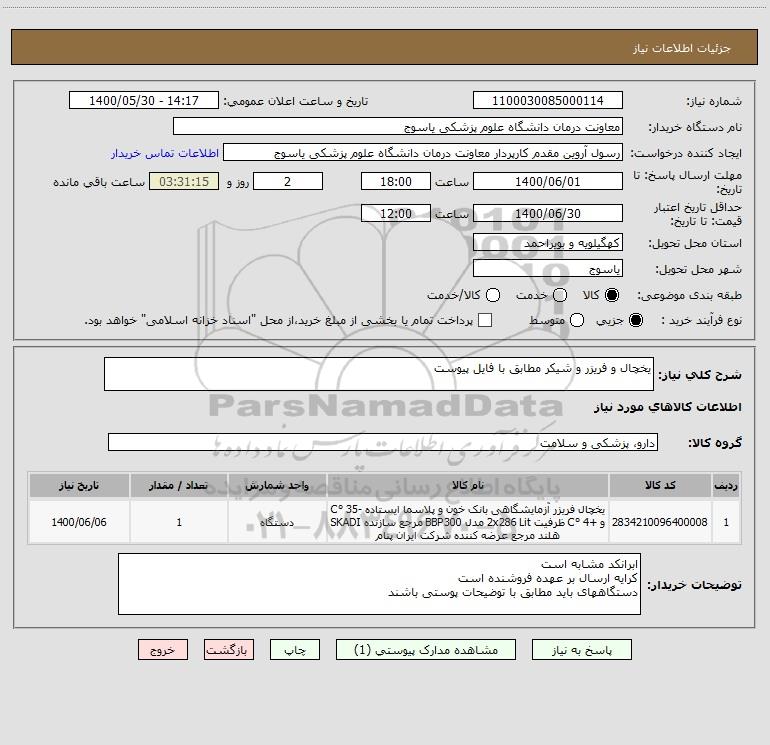 نام دستگاه خریدار:معاونت درمان دانشگاه علوم پزشکی یاسوج