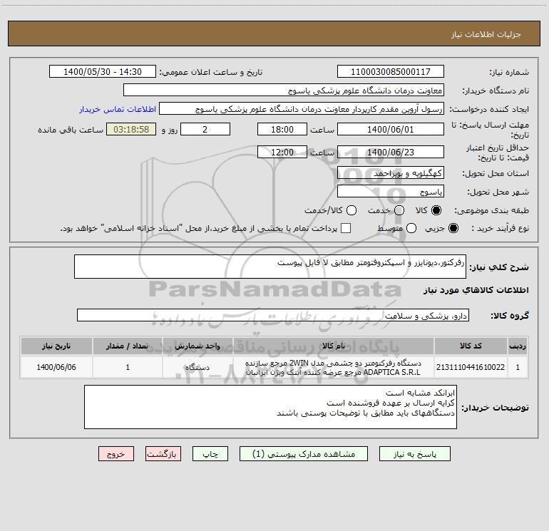 نام دستگاه خریدار:معاونت درمان دانشگاه علوم پزشکی یاسوج