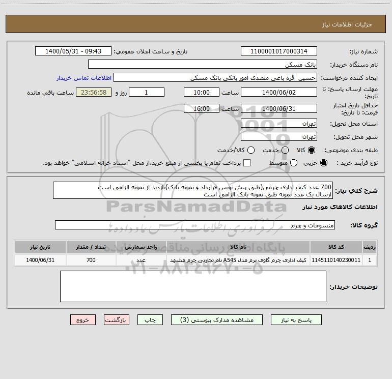 استعلام 700 عدد کیف اداری چرمی(طبق پیش نویس قرارداد و نمونه بانک)بازدید از نمونه الزامی است ارسال یک عدد نمونه طبق نمونه بانک الزامی است, استعلام 700 عدد کیف اداری چرمی(طبق پیش نویس قرارداد و نمونه بانک)بازدید از نمونه الزامی است ارسال یک عدد نمونه طبق نمونه بانک الزامی است
