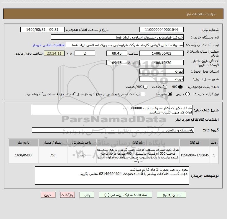 نام دستگاه خریدار:شرکت هواپیمایی جمهوری اسلامی ایران هما