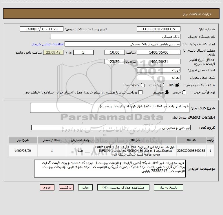 شرح کلی نیاز: خرید تجهیزات غیر فعال شبکه (طبق قرارداد و الزامات پیوست)