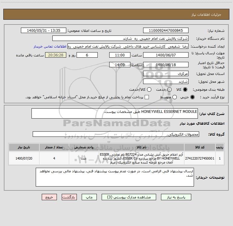 استعلام HONEYWELL ESSERNET MODULE طبق مشخصات پیوست., استعلام HONEYWELL ESSERNET MODULE طبق مشخصات پیوست.