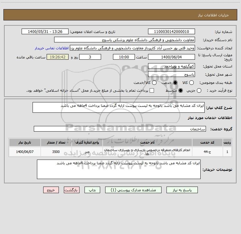 نام دستگاه خریدار:معاونت دانشجویی و فرهنگی دانشگاه علوم پزشکی یاسوج