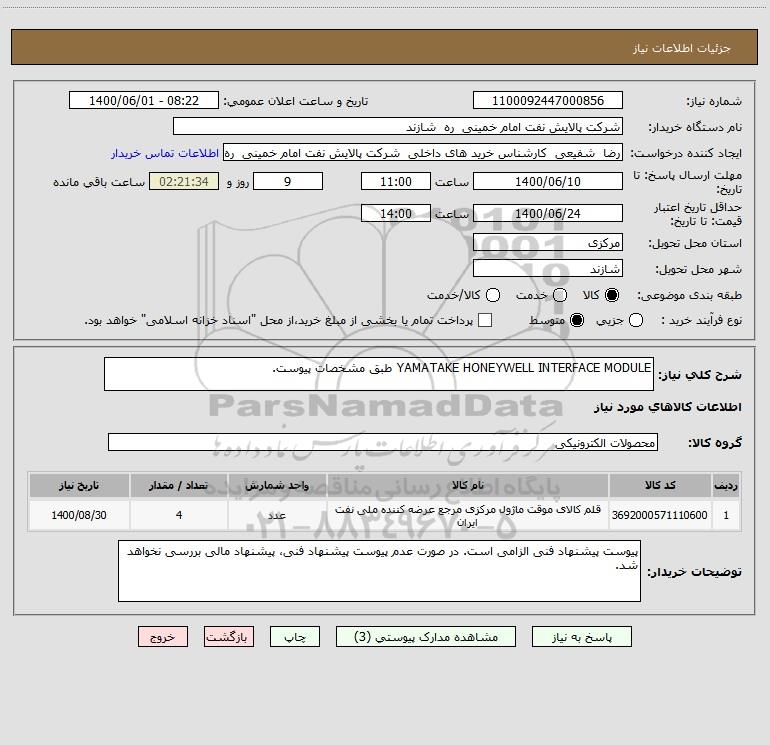 شرح کلی نیاز: YAMATAKE HONEYWELL INTERFACE MODULE طبق مشخصات پیوست.