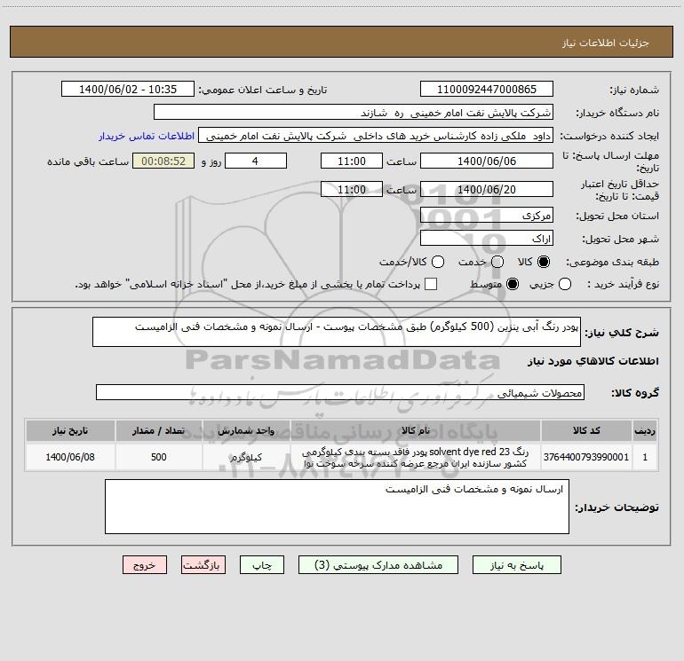 نام دستگاه خریدار:شرکت پالایش نفت امام خمینی ره شازند