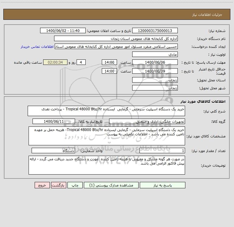نام دستگاه خریدار:اداره کل کتابخانه های عمومی استان زنجان