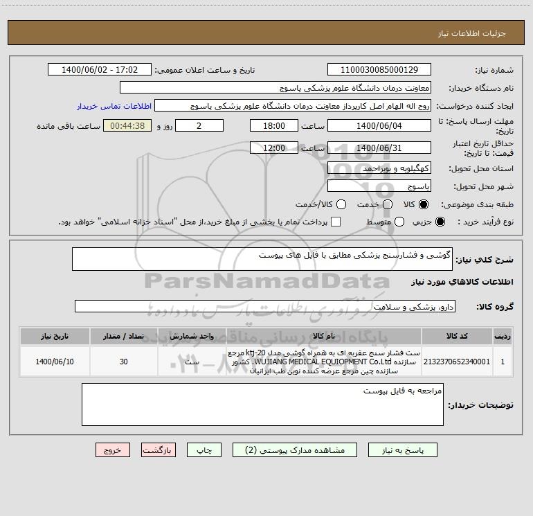 نام دستگاه خریدار:معاونت درمان دانشگاه علوم پزشکی یاسوج