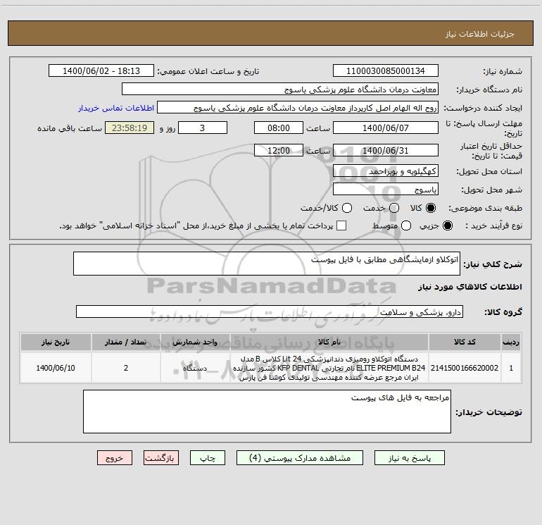 نام دستگاه خریدار:معاونت درمان دانشگاه علوم پزشکی یاسوج