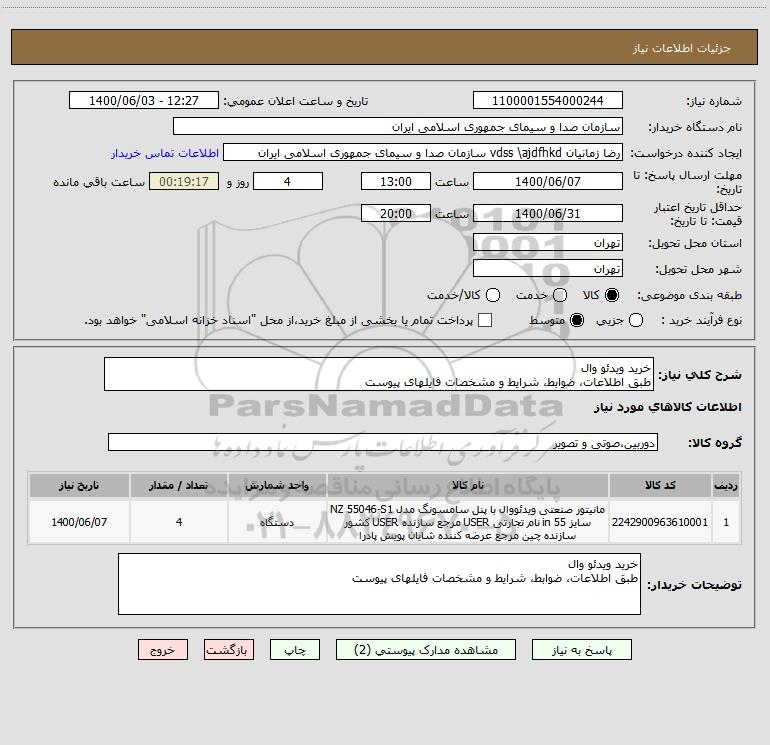 نام دستگاه خریدار:سازمان صدا و سیمای جمهوری اسلامی ایران