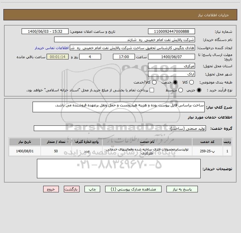 شرح کلی نیاز: ساخت براساس فایل پیوست بوده و هزینه هیدروتست و حمل ونقل برعهده فروشنده می باشد.