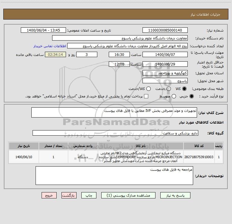 نام دستگاه خریدار:معاونت درمان دانشگاه علوم پزشکی یاسوج