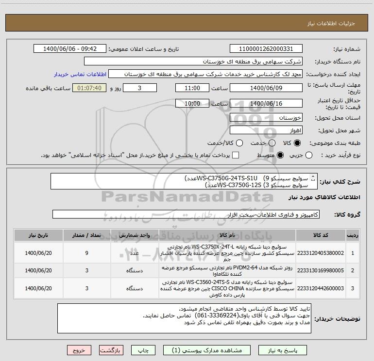 نام دستگاه خریدار:شرکت سهامی برق منطقه ای خوزستان