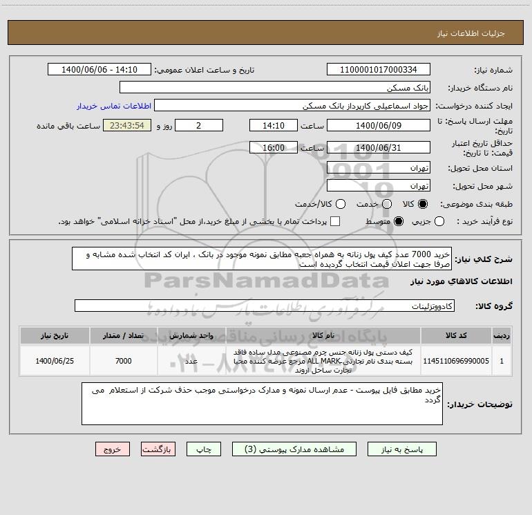 شرح کلی نیاز: خرید 7000 عدد کیف پول زنانه به همراه جعبه مطابق نمونه موجود در بانک ، ایران کد انتخاب شده مشابه و صرفا جهت اعلان قیمت انتخاب گردیده است