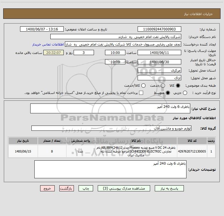 شرح کلی نیاز: باطری 6 ولت 240 آمپر