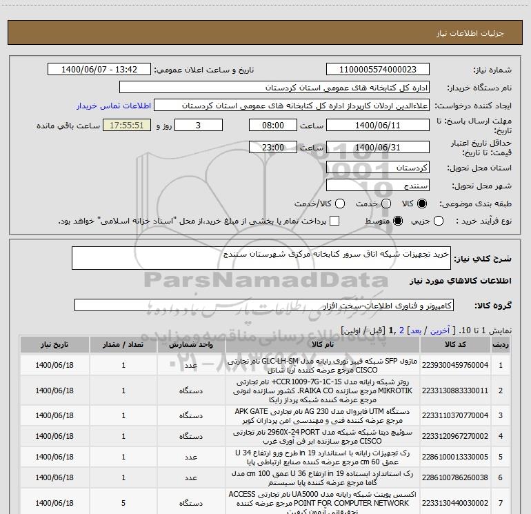 شرح کلی نیاز: خرید تجهیزات شیکه اتاق سرور کتابخانه مرکزی شهرستان سنندج