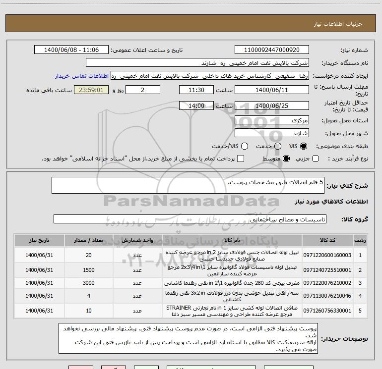 شرح کلی نیاز: 5 قلم اتصالات طبق مشخصات پیوست.
