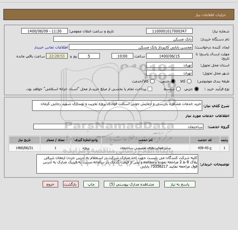 شرح کلی نیاز: خرید خدمات مشاوره بازرسی و آزمایش جوش اسکلت فولادی پروژه تخریب و نوسازی شهید رجایی کرمان