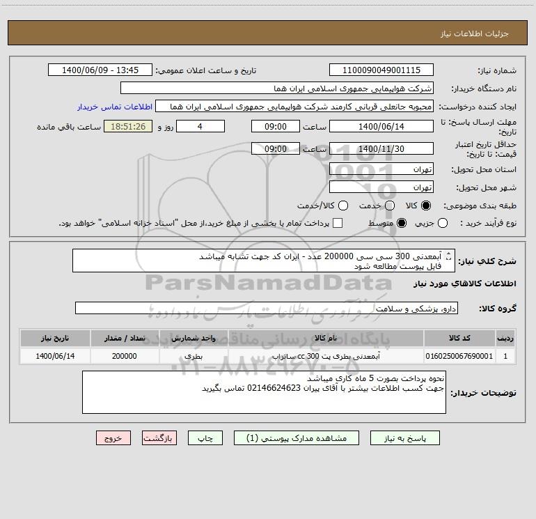نام دستگاه خریدار:شرکت هواپیمایی جمهوری اسلامی ایران هما