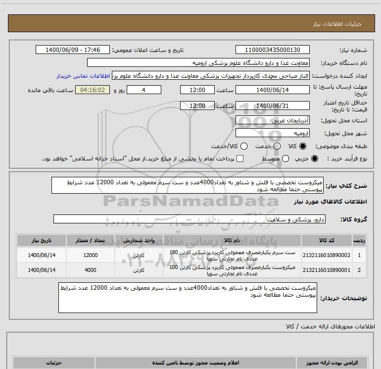 شرح کلی نیاز: میکروست تخصصی با فلش و شناور به تعداد4000عدد و ست سرم معمولی به تعداد 12000 عدد شرایط پیوستی حتما مطالعه شود