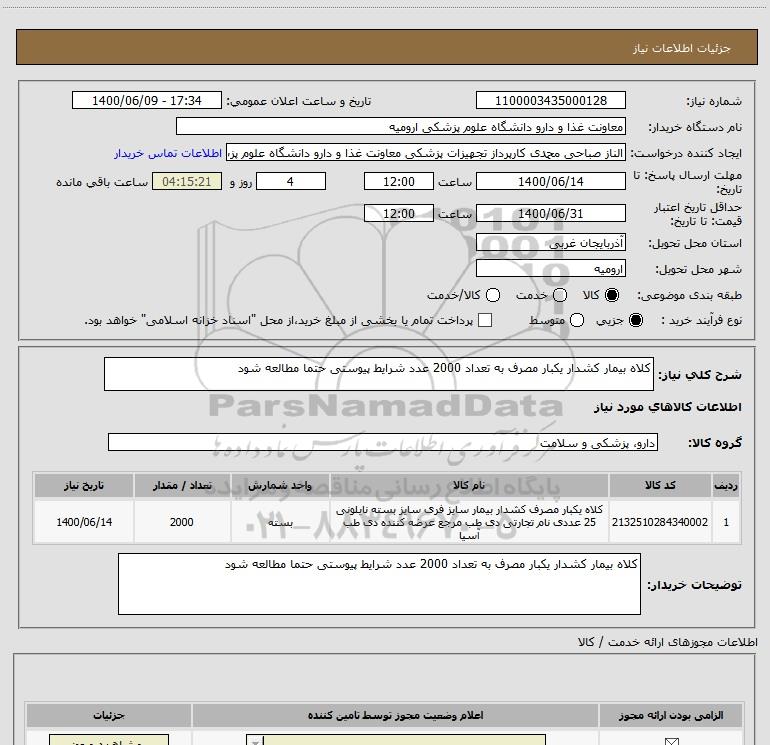 نام دستگاه خریدار:معاونت غذا و دارو دانشگاه علوم پزشکی ارومیه