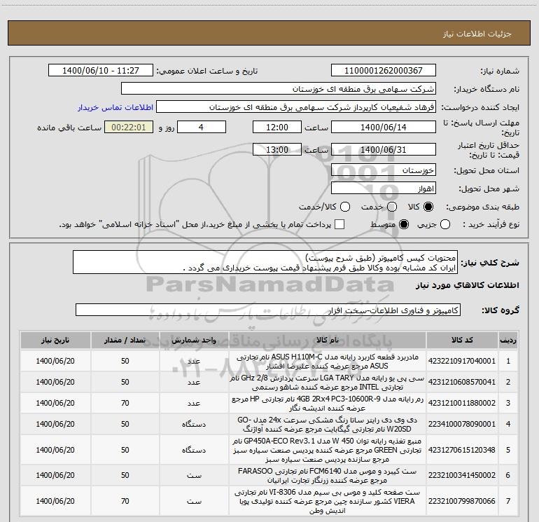 شرح کلی نیاز: محتویات کیس کامپیوتر (طبق شرح پیوست)