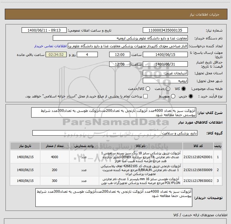 نام دستگاه خریدار:معاونت غذا و دارو دانشگاه علوم پزشکی ارومیه