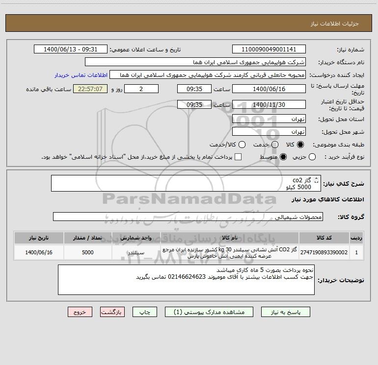 شرح کلی نیاز: گاز co2 5000 کیلو ایران کد جهت تشابه میباشد