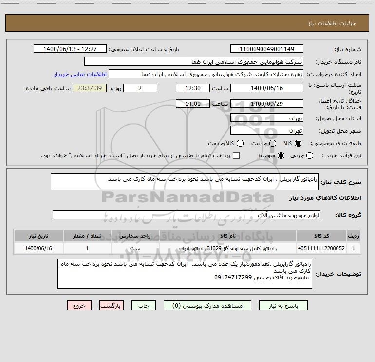 استعلام رادیاتور گازایرپلن . ایران کدجهت تشابه می باشد نحوه پرداخت سه ماه کاری می باشد , استعلام رادیاتور گازایرپلن . ایران کدجهت تشابه می باشد نحوه پرداخت سه ماه کاری می باشد