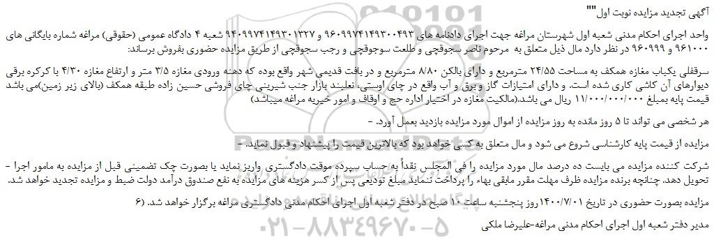 "آگهی تجدید مزایده نوبت اول"