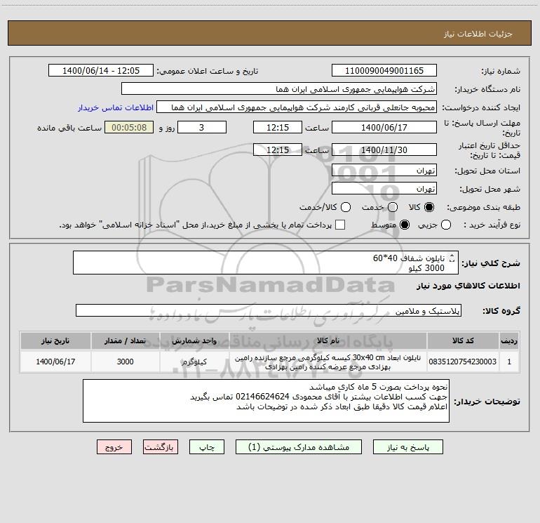 شرح کلی نیاز: نایلون شفاف 40*60