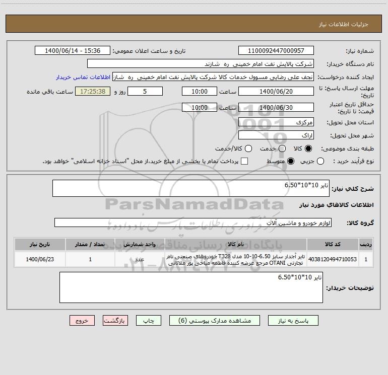 استعلام تایر 10*10*6.50, استعلام تایر 10*10*6.50