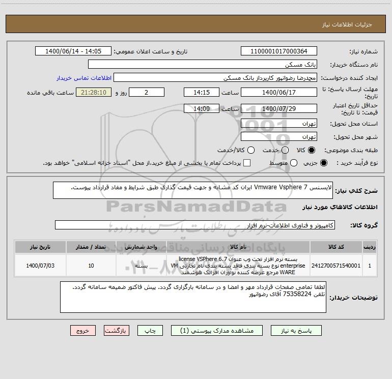 استعلام لایسنس Vmware Vsphere 7 ایران کد مشابه و جهت قیمت گذاری طبق شرایط و مفاد قرارداد پیوست., استعلام لایسنس Vmware Vsphere 7 ایران کد مشابه و جهت قیمت گذاری طبق شرایط و مفاد قرارداد پیوست.