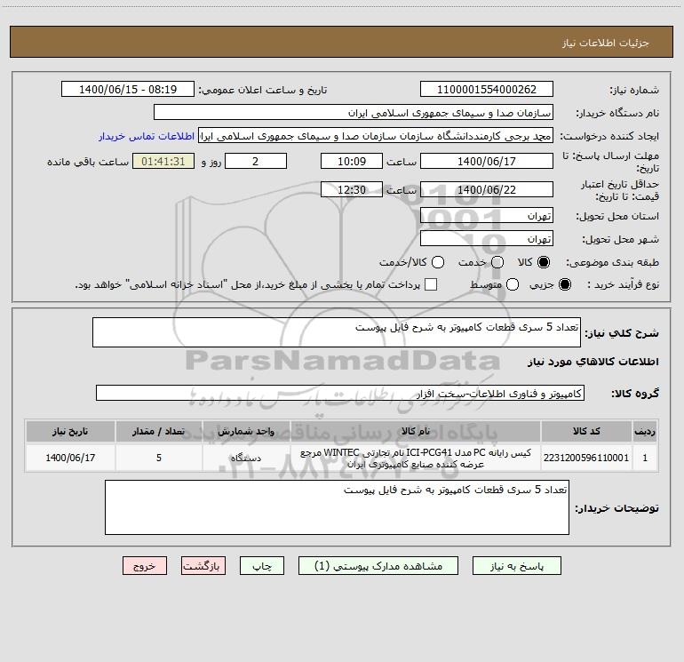 شرح کلی نیاز: تعداد 5 سری قطعات کامپیوتر به شرح فایل پیوست