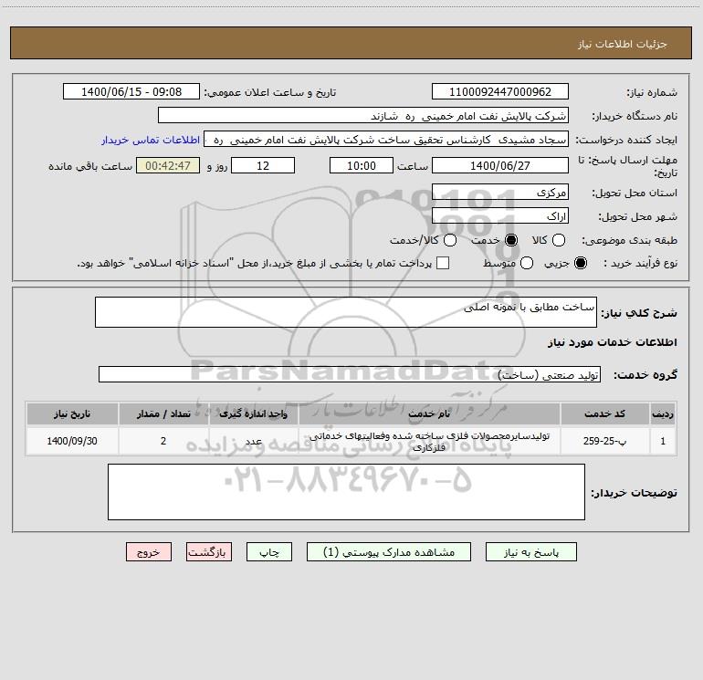 شرح کلی نیاز: ساخت مطابق با نمونه اصلی