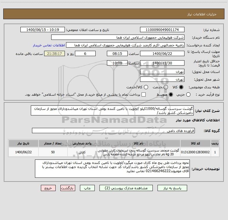 نام دستگاه خریدار:شرکت هواپیمایی جمهوری اسلامی ایران هما