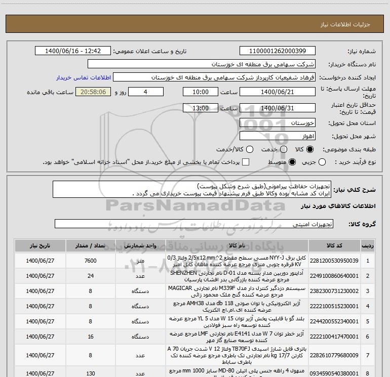 نام دستگاه خریدار:شرکت سهامی برق منطقه ای خوزستان