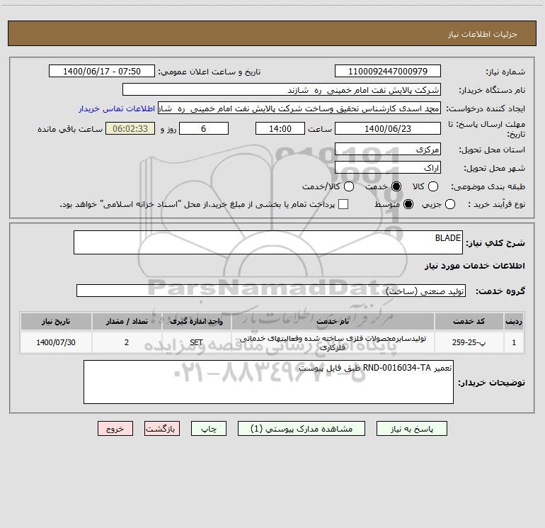 توضیحات خریدار:تعمیر RND-0016034-TA طبق فایل پیوست