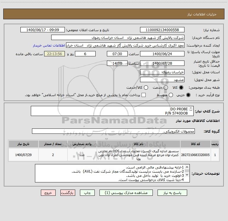 نام دستگاه خریدار:شرکت پالایش گاز شهید هاشمی نژاد استان خراسان رضوی
