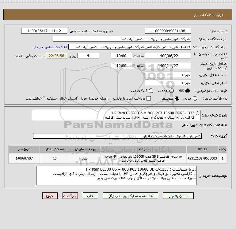 نام دستگاه خریدار:شرکت هواپیمایی جمهوری اسلامی ایران هما