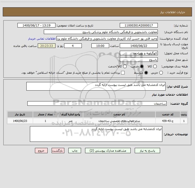 نام دستگاه خریدار:معاونت دانشجویی و فرهنگی دانشگاه علوم پزشکی یاسوج