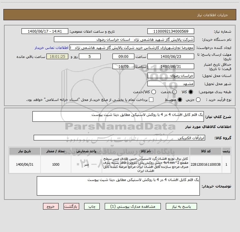نام دستگاه خریدار:شرکت پالایش گاز شهید هاشمی نژاد استان خراسان رضوی