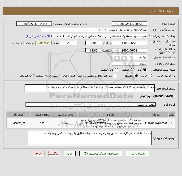 شرح کلی نیاز: محافظ انگشتان در کارهای صنعتی وضربه زدن مانده پتک مطابق با پیوست عکس ودرخواست