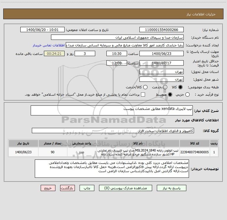 نام دستگاه خریدار:سازمان صدا و سیمای جمهوری اسلامی ایران