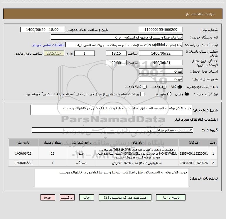 توضیحات خریدار:خرید اقلام برقی و تاسیساتی طبق اطلاعات، ضوابط و شرایط اعلامی در فایلهای پیوست