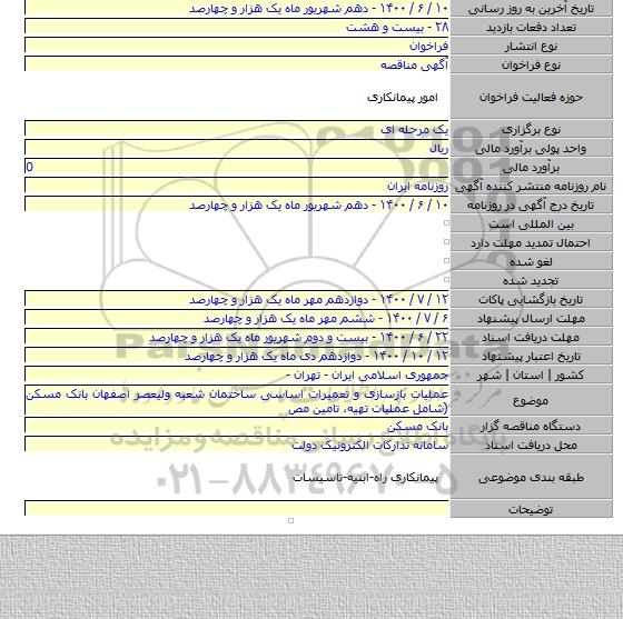 عملیات بازسازی و تعمیرات اساسی ساختمان شعبه ولیعصر اصفهان بانک مسکن (شامل عملیات تهیه، تامین مص