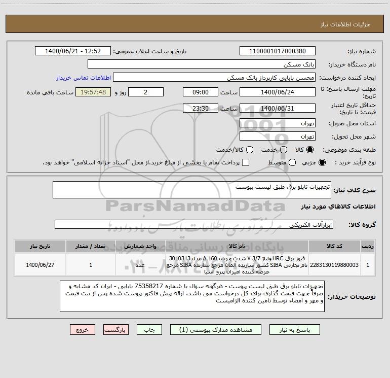 شرح کلی نیاز: تجهیزات تابلو برق طبق لیست پیوست