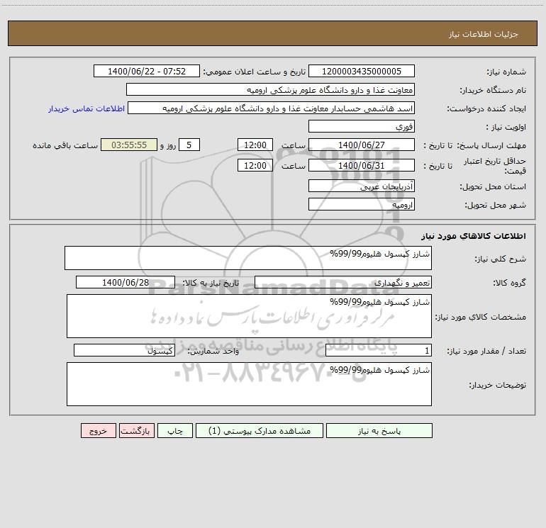 نام دستگاه خریدار:معاونت غذا و دارو دانشگاه علوم پزشکی ارومیه