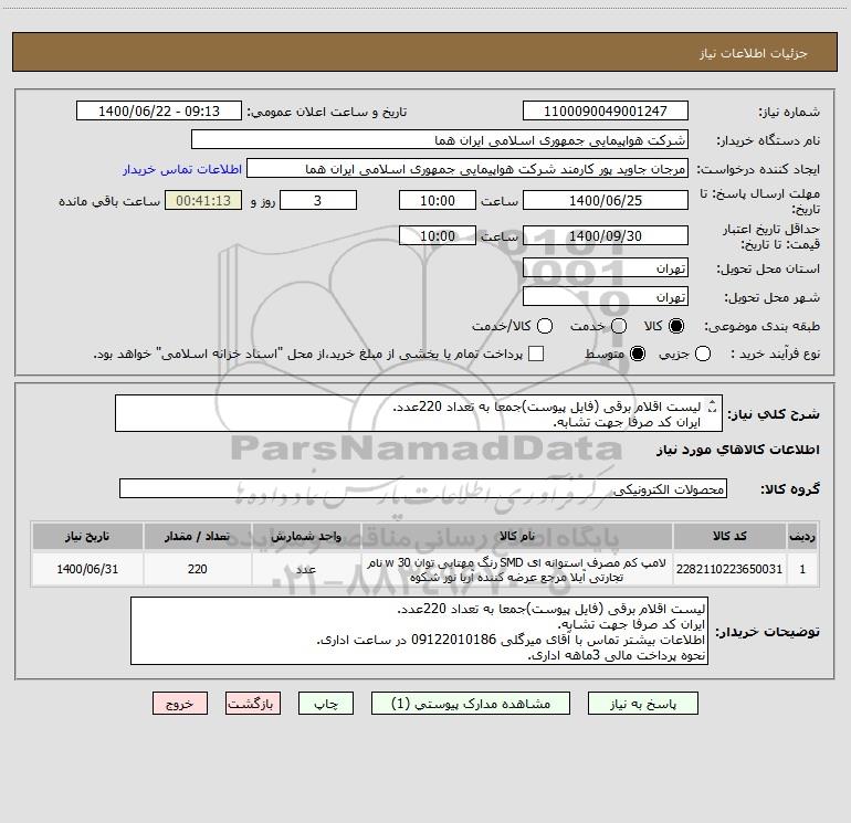 توضیحات خریدار:لیست اقلام برقی (فایل پیوست)جمعا به تعداد 220عدد. ایران کد صرفا جهت تشابه. اطلاعات بیشتر تماس با آقای میرگلی 09122010186 در ساعت اداری. نحوه پرداخت مالی 3ماهه اداری.